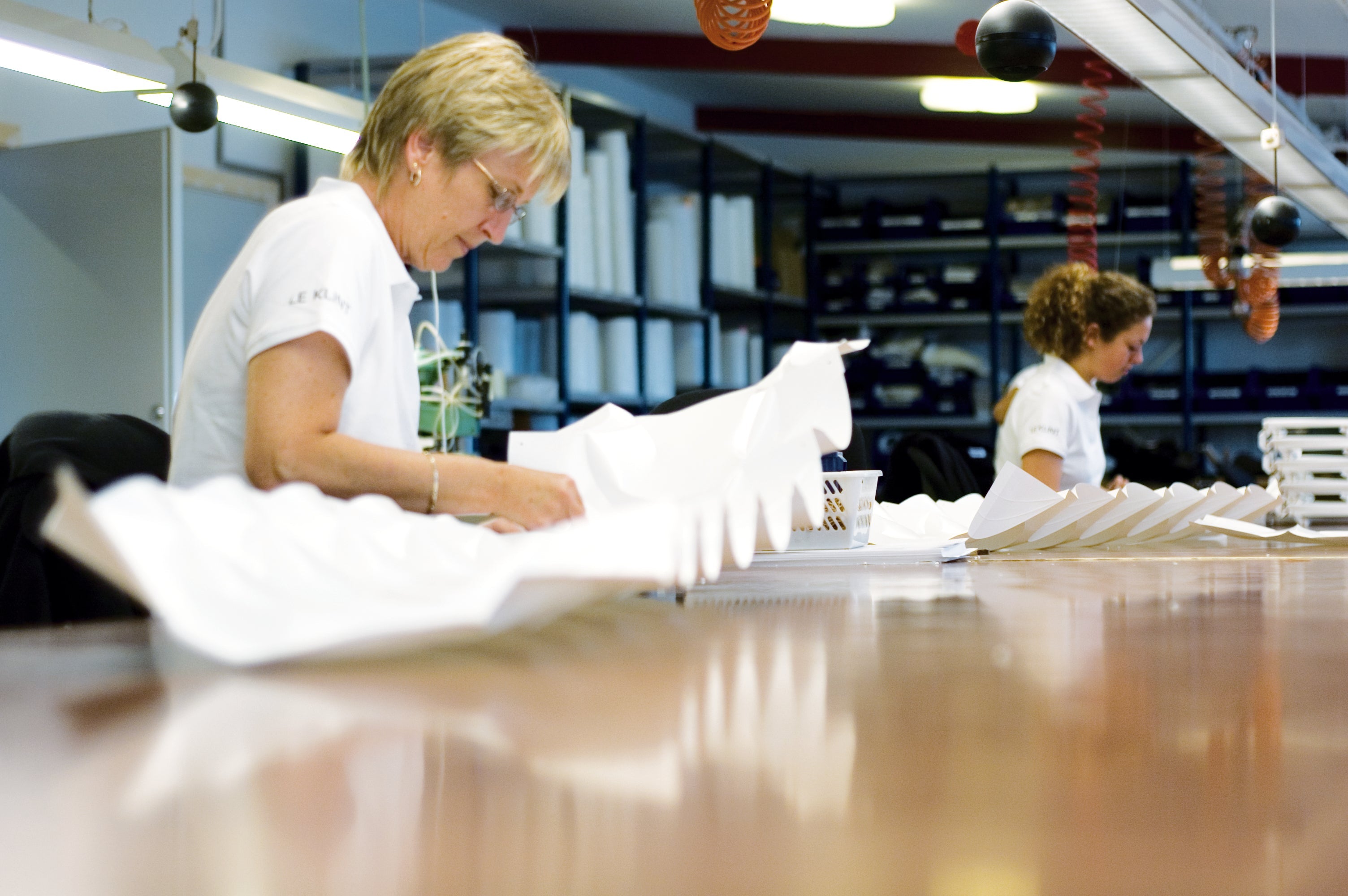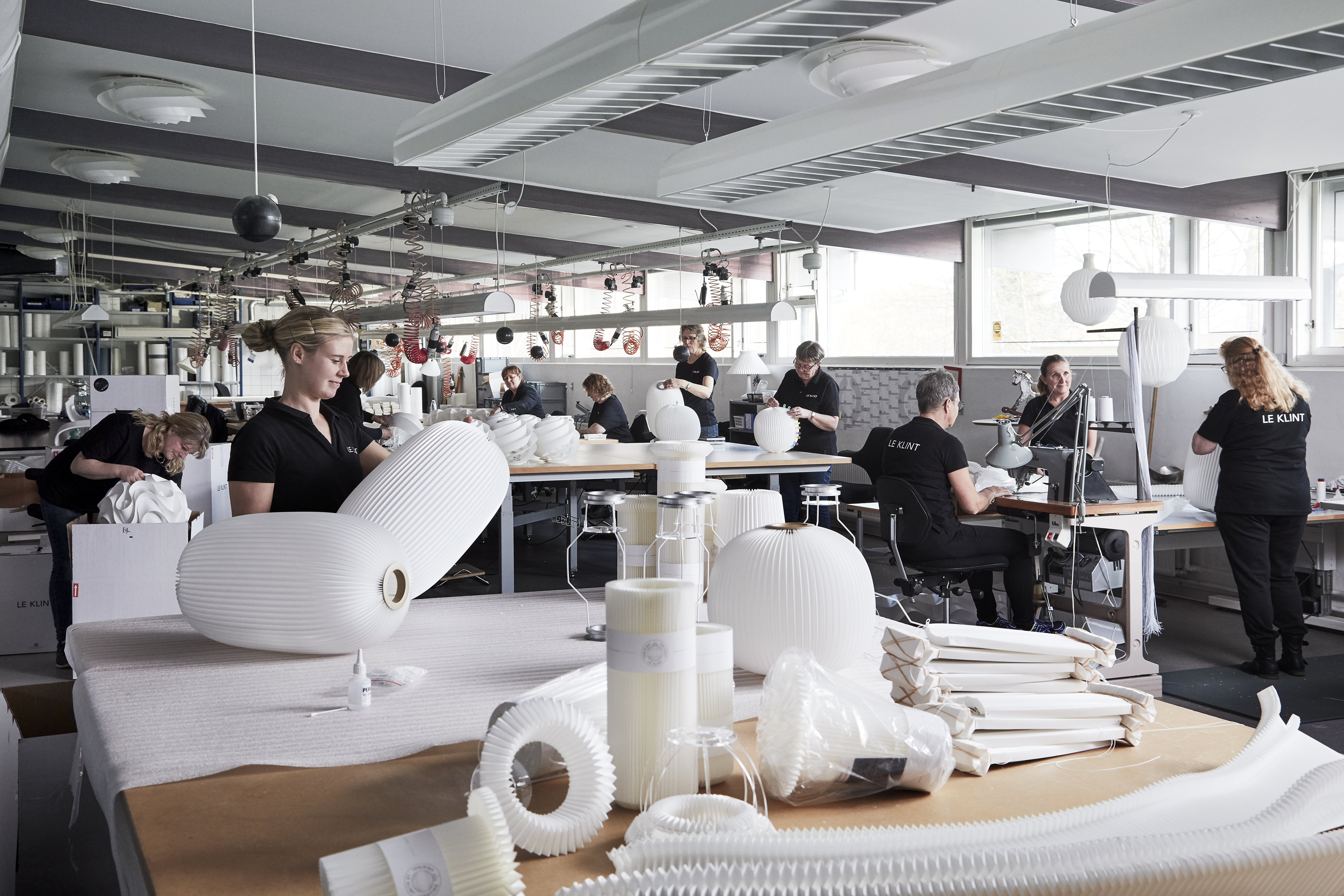 Heute ist Le Klint ein modernes Produktionsunternehmen, das gleichzeitig an einer starken Handwerkstradition festhält. Von Fließbandarbeit und Massenproduktion gibt es hier nichts. Die klassische Handwerkskunst wird durch die sogenannten Falttechniken beibehalten.
