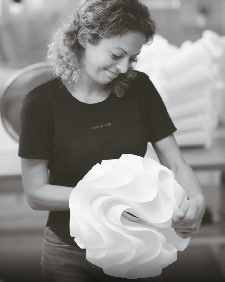 Die sogenannten Falttechnikerinnen von Le Klint sind etwas ganz Besonderes. Nur in Odense – nirgendwo sonst auf der Welt - wurde das Falten von Lampenschirmen als Handwerk bewahrt. Und nur bei Le Klint werden kreuzplissierte Schirme hergestellt. Viele Ingenieure haben sich schon daran versucht, Maschinen herzustellen. Es hat sich jedoch als zu schwierig erwiesen und das Handwerk war nie in Gefahr.