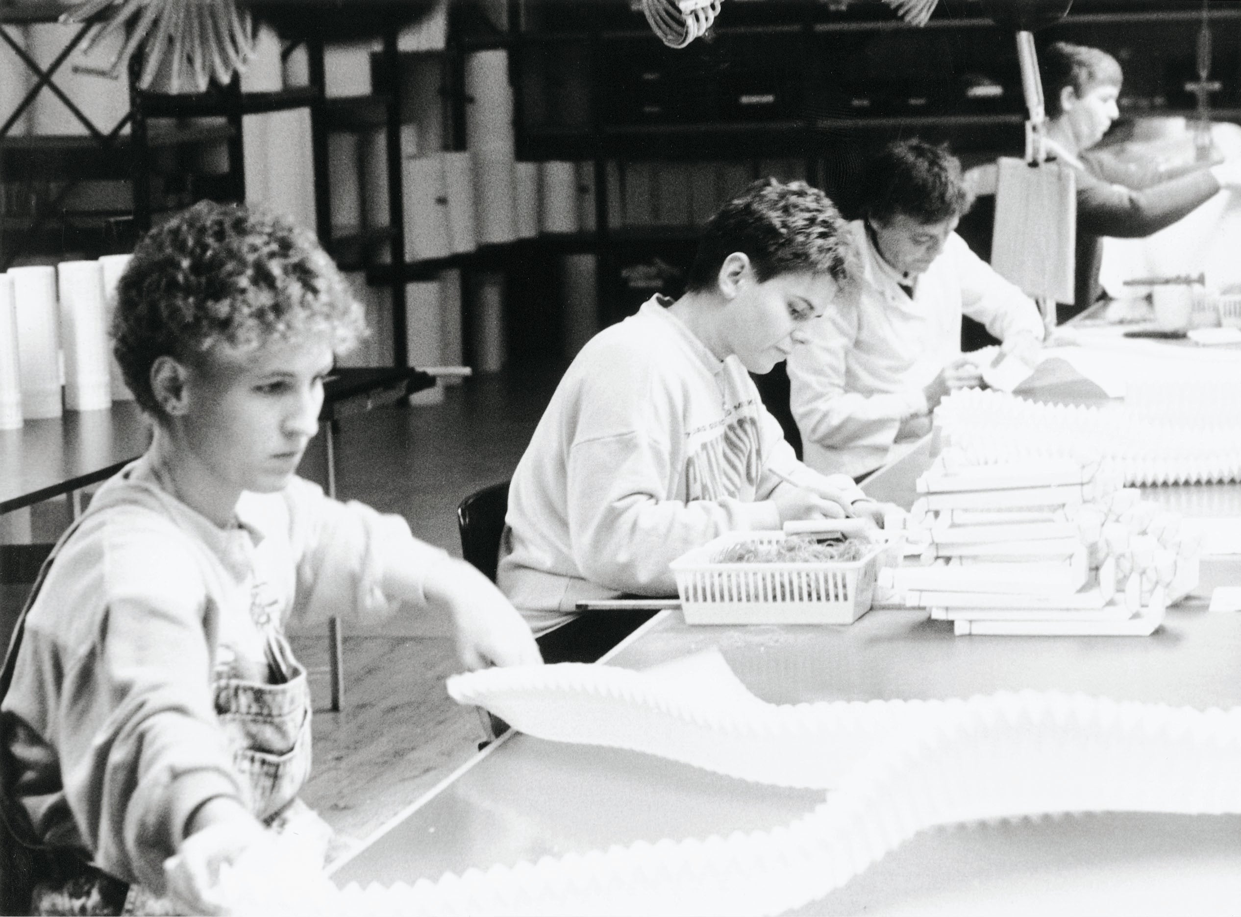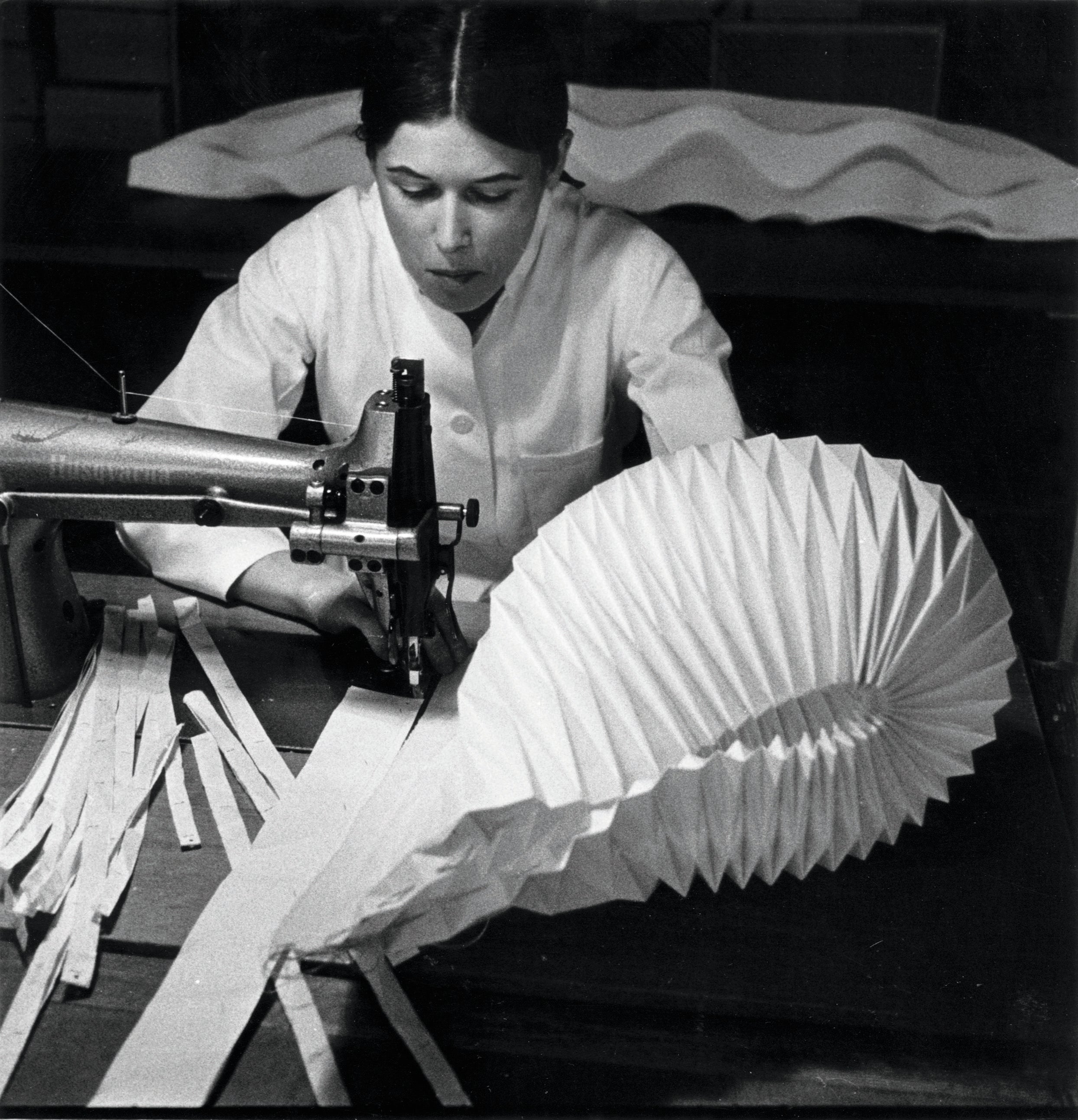 Dank der großen Fingerfertigkeit der Faltmitarbeiter wurden im Laufe der Jahre die Modelllayouts der Designer umgesetzt und sie werden zu Rate gezogen, wenn neue Ideen in die tatsächliche Produktion umgesetzt werden müssen.