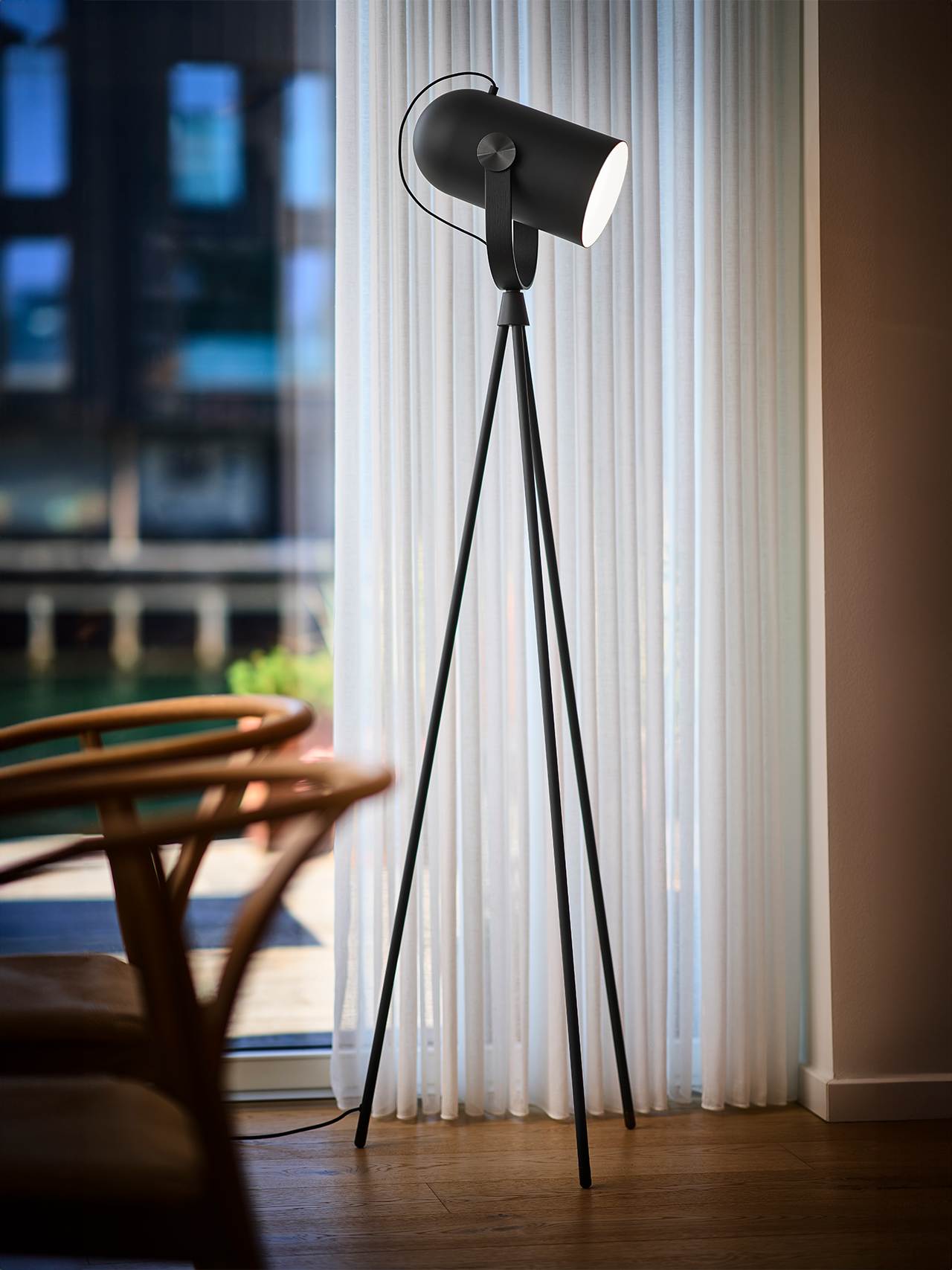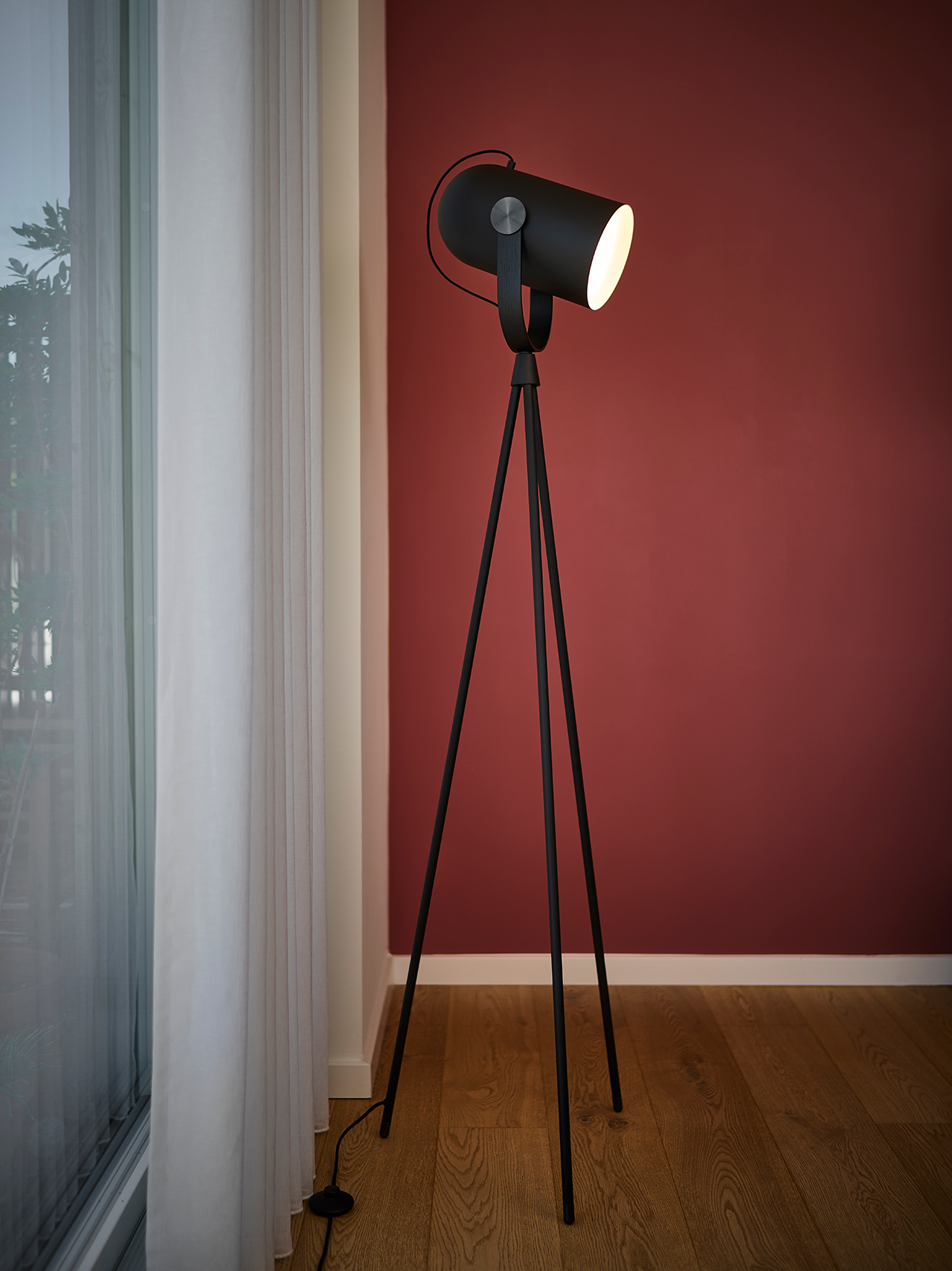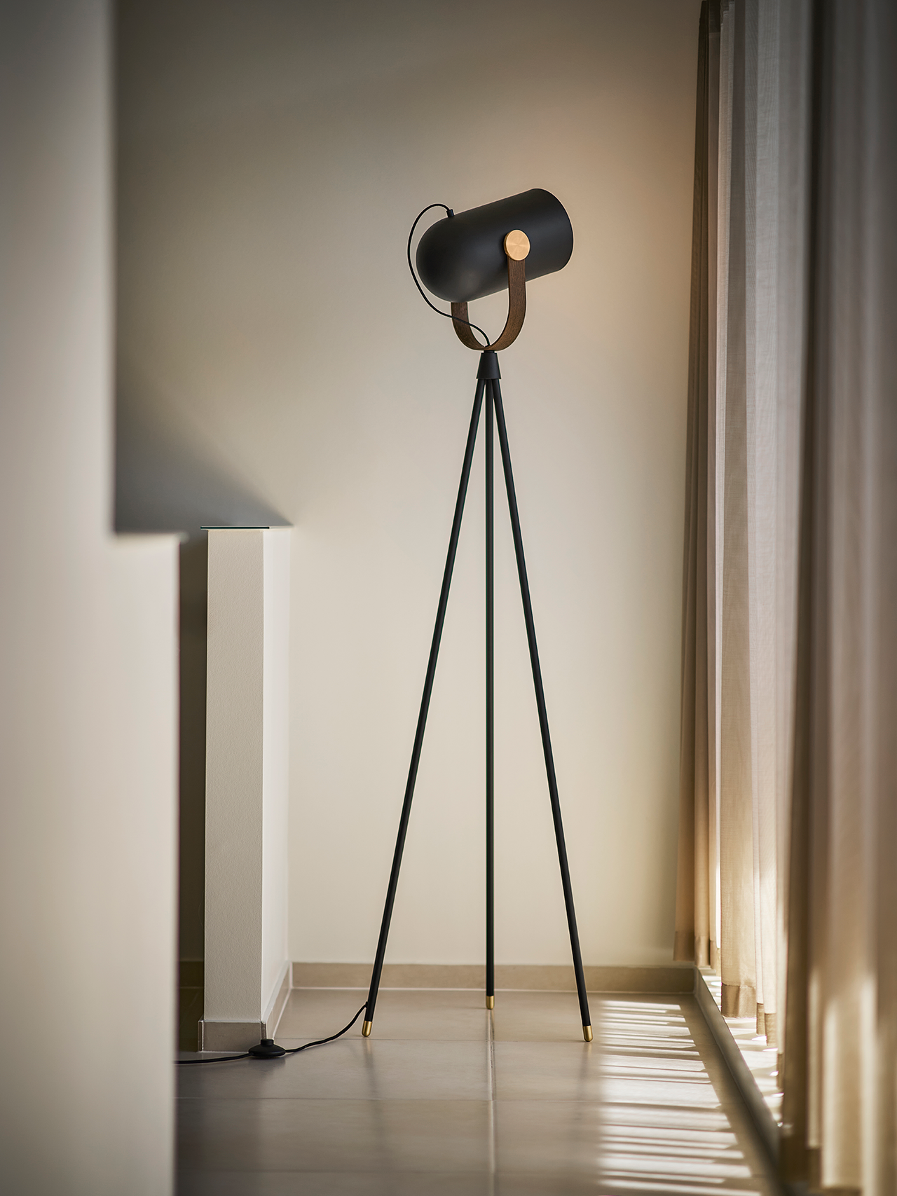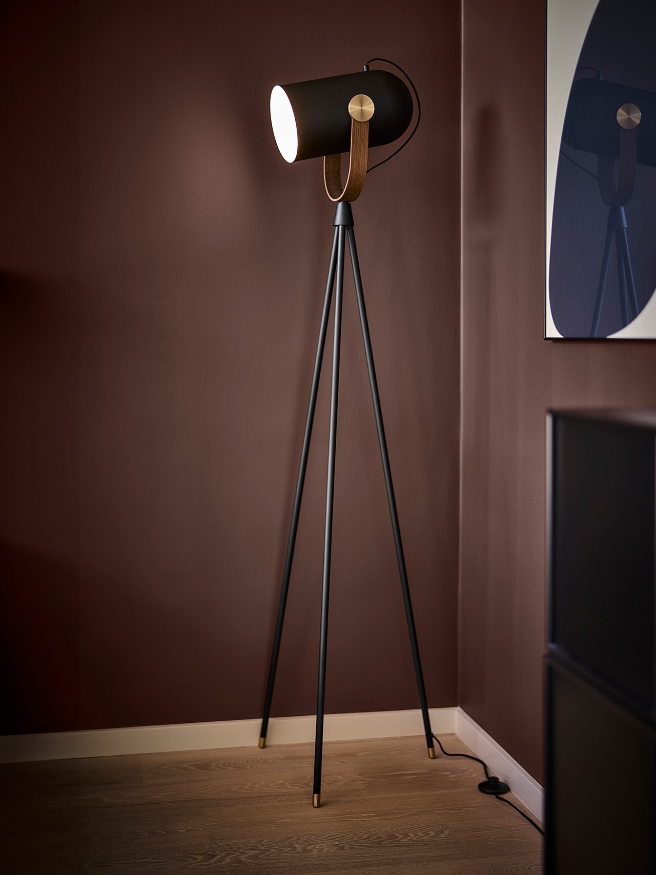 Die neue Carronade II Kollektion wird mit zwei Modellen vorgestellt: einer High-Stehlampe und einer Small-Pendellampe. Beide Lampen sind in zwei eleganten Kombinationen erhältlich: schwarz Eiche/schwarz und geräucherte Eiche/ Messing. Diese neuen Designs tragen den gleichen visuellen Ausdruck wie die ursprüngliche Carronade, jedoch mit einer einfacheren und leichteren Materialkonstruktion, die einen moderneren und minimalistischen Look bietet. Besonders die Variante in schwarz Eiche/schwarz hebt diese moderne Interpretation des ikonischen Designs hervor.