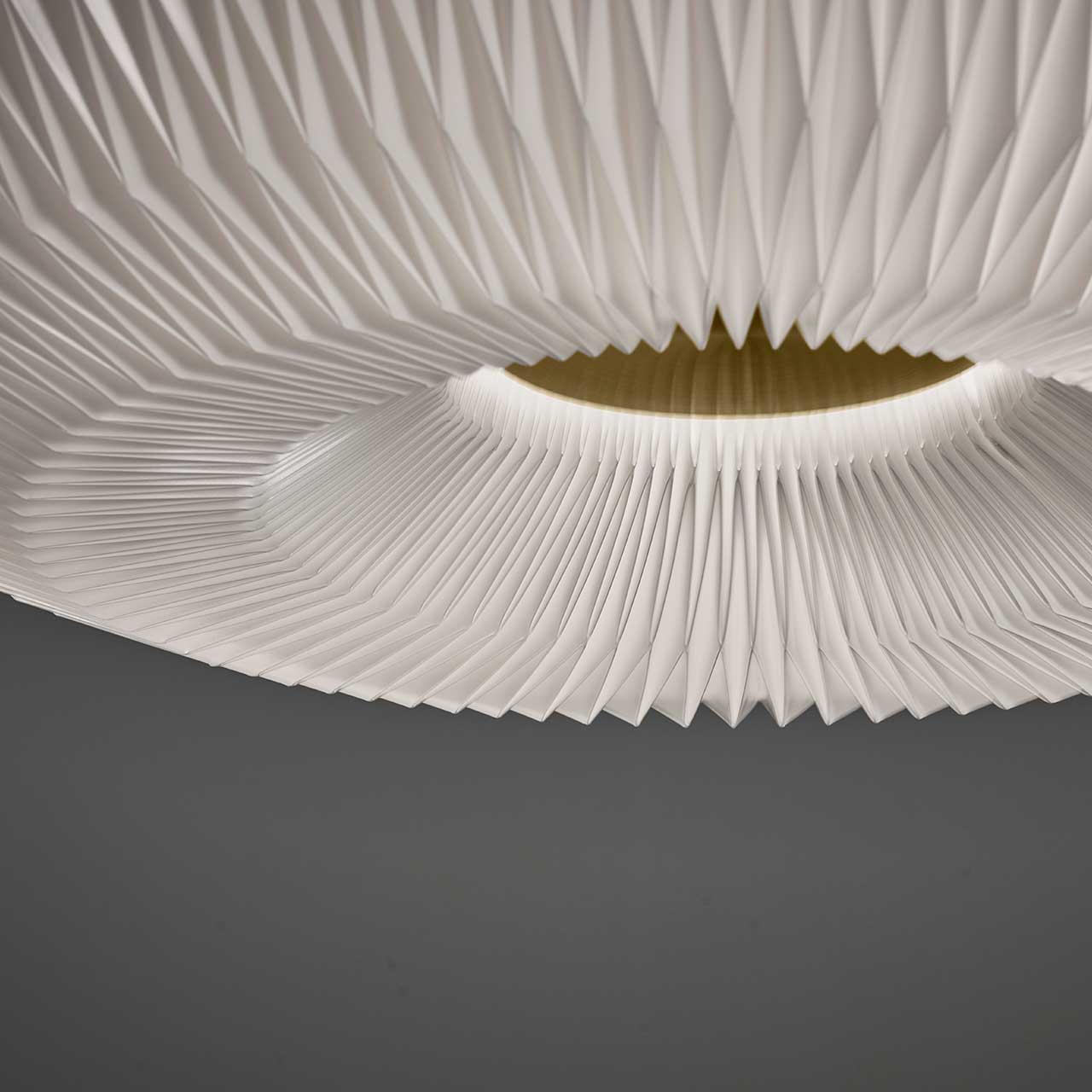 Donut ist nach seiner Form benannt, einem Ring mit einem Loch in der Mitte. Die Kreuzplisseetechnik folgt dem Ring und macht die Lampe zu einer der anspruchsvollsten und zeitaufwändigsten Faltungen der gesamten Kollektion.