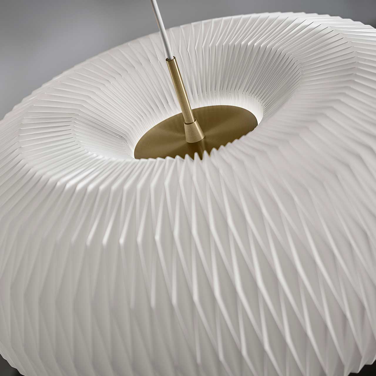 Die handgefalteten Lampen von Le Klint sind zeitgemäßer denn je. Die Designerin Lise Navne hat sich mit Donut des Falthandwerks angenommen, und ihre Lampen entwickeln mit der Zeit, aber stets mit einer klaren Verbindung zur langjährigen Unternehmenstradition.
