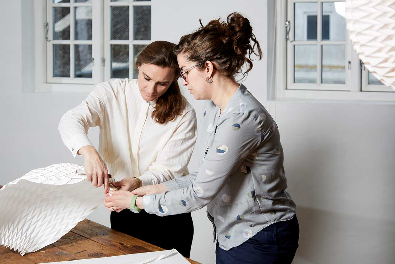 Mit Caleo hat Rikke Frost eine Neuinterpretation des weltbekannten Falthandwerks von Le Klint gewagt. Es ist ihr gelungen, eine Lampe zu entwerfen, die sowohl innovative als auch altbekannte Elemente umfasst.